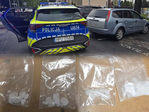 Kierowca na widok policjantów wyrzucił przez okno woreczek z niedozwoloną substancją, dodatkowo jechał bez uprawnień- został zatrzymany