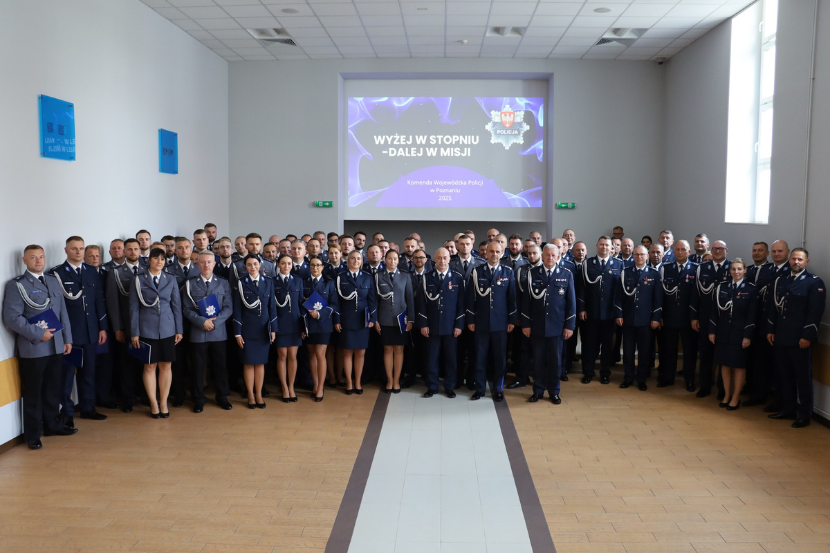W imieniu Komendanta Wojewódzkiego Policji w Poznaniu nadinsp. Tomasza Olczyka, I Zastępca Komendanta Wojewódzkiego Policji w Poznaniu insp. Sławomir Piekut wręczył kilkudziesięciu policjantkom i policjantom awanse na stopień młodszego aspiranta. Uroczysta zbiórka to pokłosie odbytego szkolenia aspiranckiego i zdanego pomyślnie egzaminu końcowego. W uroczystości brał również udział Zastępca Komendanta Wojewódzkiego Policji w Poznaniu insp. Tomasz Barłożek, Przewodniczący ZW NSZZ Policjantów woj. wielkopolskiego mł. insp. Andrzej Szary oraz przełożeni awansowanych funkcjonariuszy.