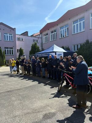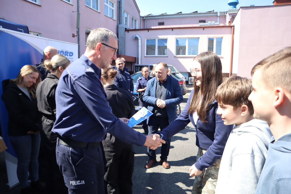 Na uroczystość przybli również: Naczelnik Wydziału Prewencji podinsp. Piotr Kępski, Naczelnik Wydziału Ruchu Drogowego kom. Marek Zięty, przedstawiciele Starostwa Średzkiego, Dyrekcja Szkoły Centrum Kształcenia Zawodowego i Ustawicznego w Środzie Wlkp.